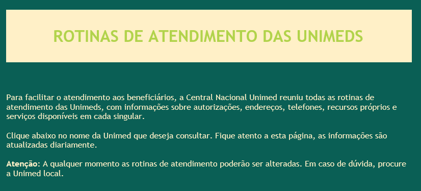 Consultar informações de rotina de atendimentos de todas as UNIMEDs